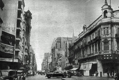 Avenida Corrientes y Esmeralda en la década del 50′. Photographer:  Unknown.  Public Domain via Wikimedia Commons.